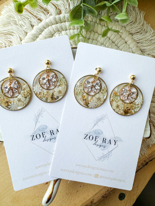 Welcome to Zoe Ray Designs! I’m Zoe, a wife, mama of two, and crafter! I started this jewelry adventure as a way to pass the time during quarantine. Once I discovered resin, I started to use flowers from my own gardens and it has only grown from there. Each piece features flowers that were hand picked and dried by myself and delicately placed in the resin. All items are one of a kind and truly unique - just like you!