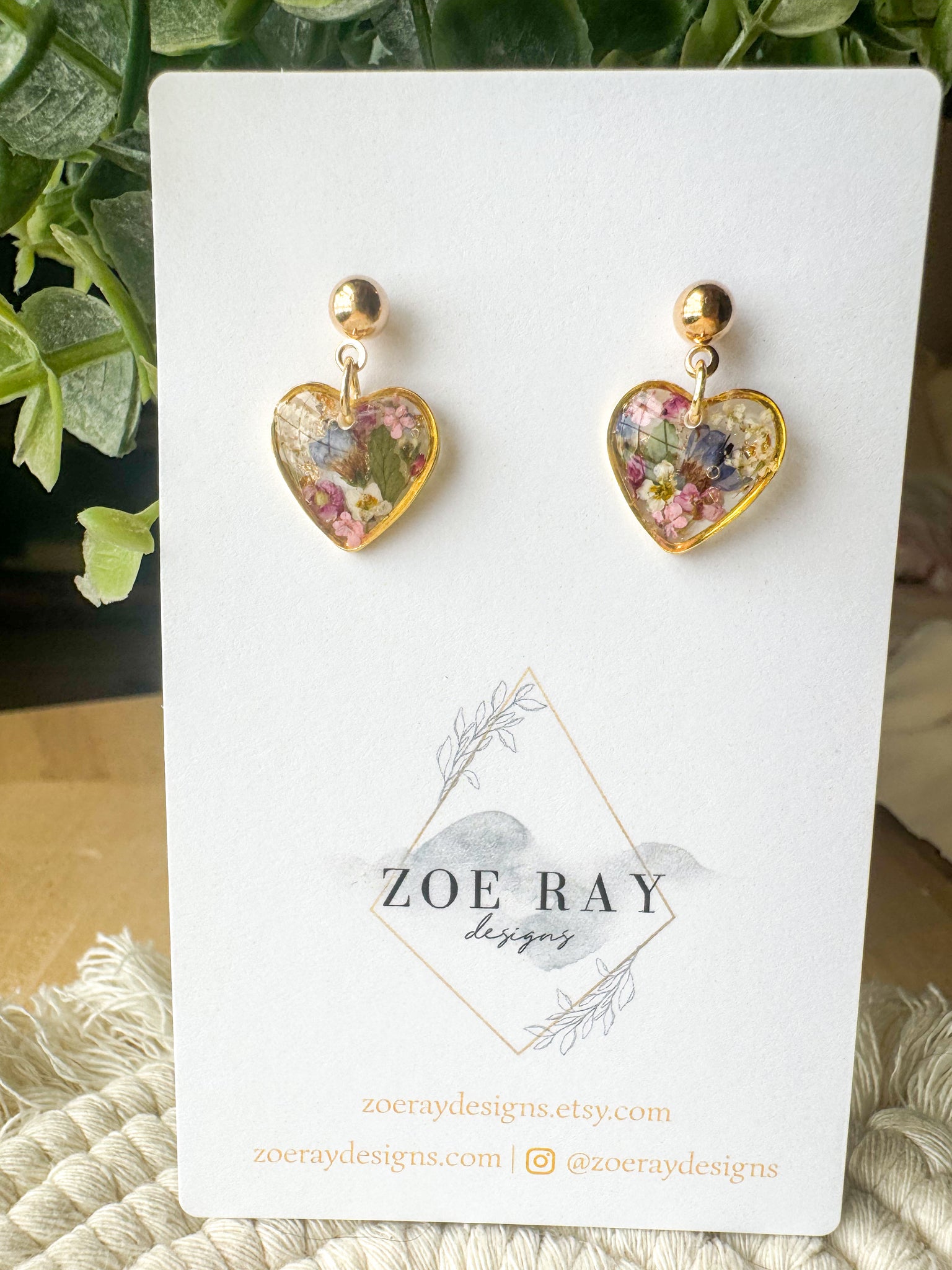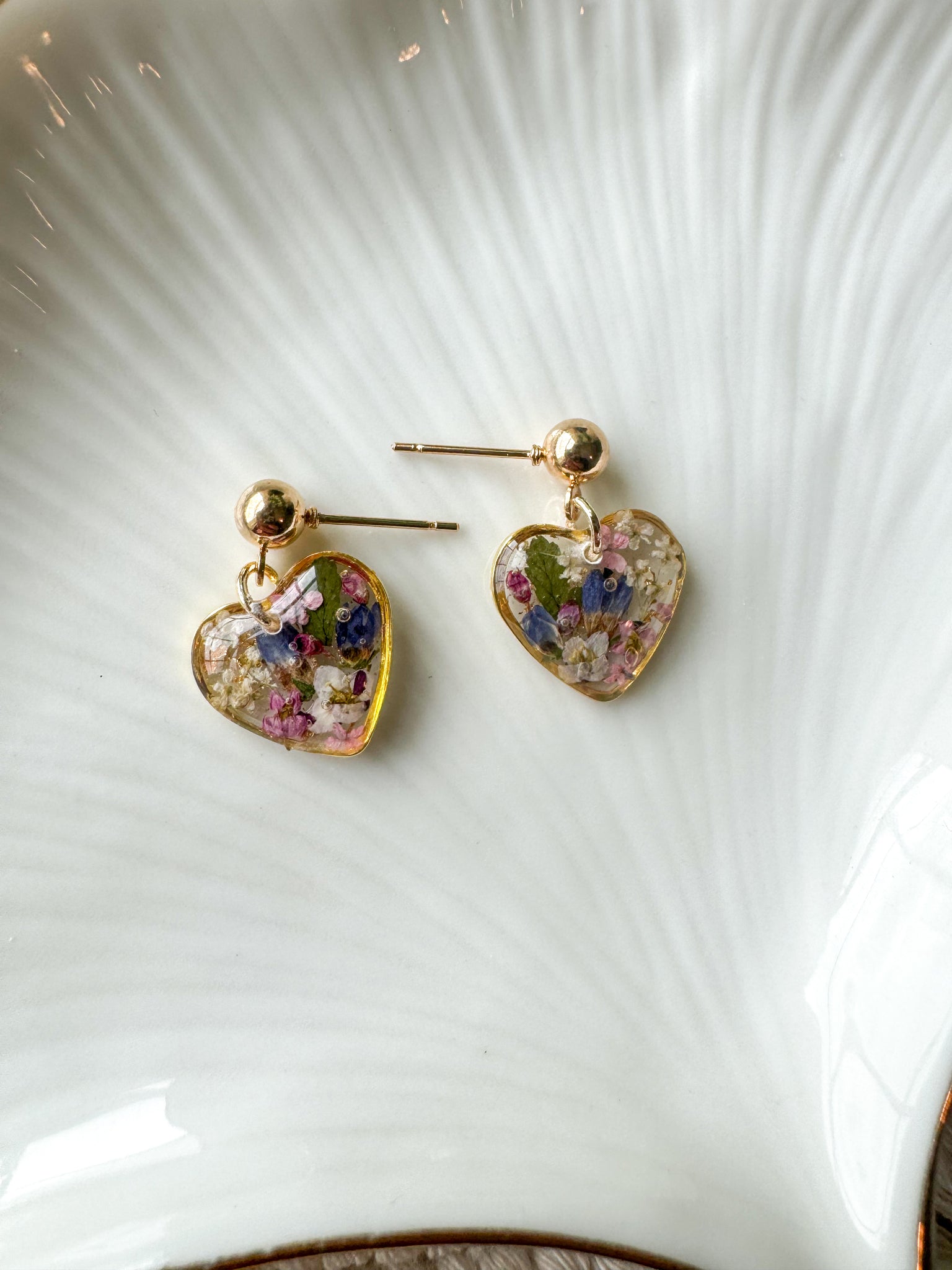 Dainty heart dangles filled with tiny wildflowers