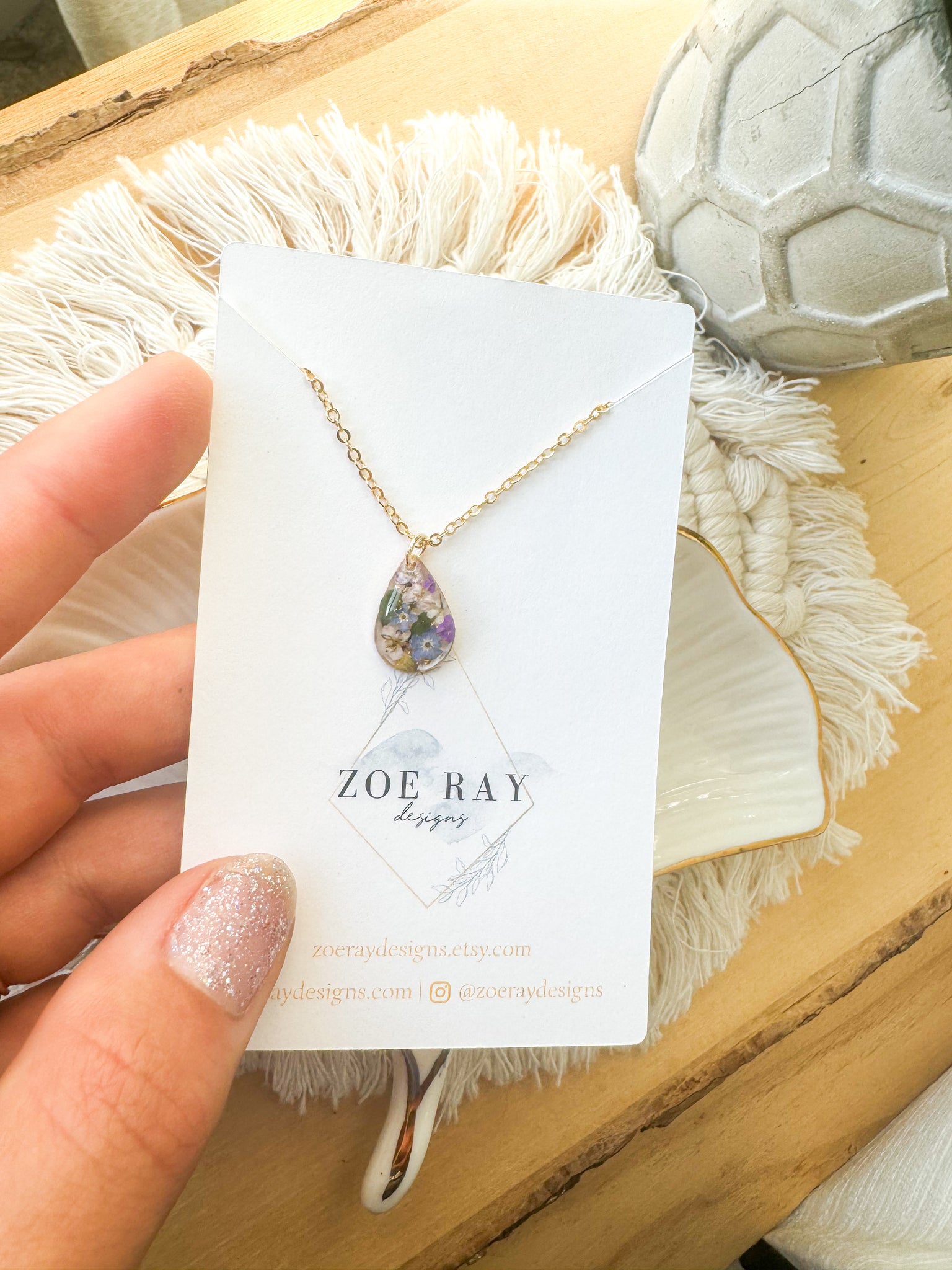 Real, dried flowers preserved in resin